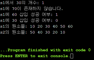 cout<<"s1에서 30의 개수: "<<s1.count(30)<<endl;